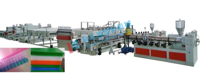 中空格子板設備用于PC、PE、PP中空格子板連續(xù)生產(chǎn)。產(chǎn)品廣泛用于建筑裝飾、廣告布置、包裝等領域。PE、PP格子板可以代替紙箱作包裝箱,質(zhì)量輕、強度高、防潮、防腐。